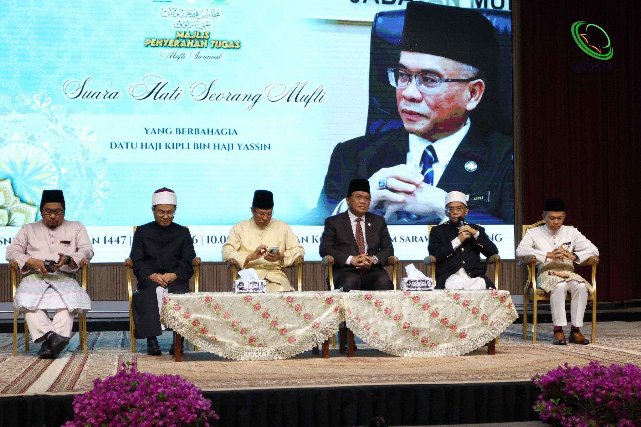 Majlis ini menyaksikan penyerahan tugas daripada mantan Mufti Sarawak, Datu Haji Kipli bin Haji Yassin, kepada Mufti Sarawak yang baharu, Sahibus Samahah Datu Haji Khalidi bin Haji Ibrahim.