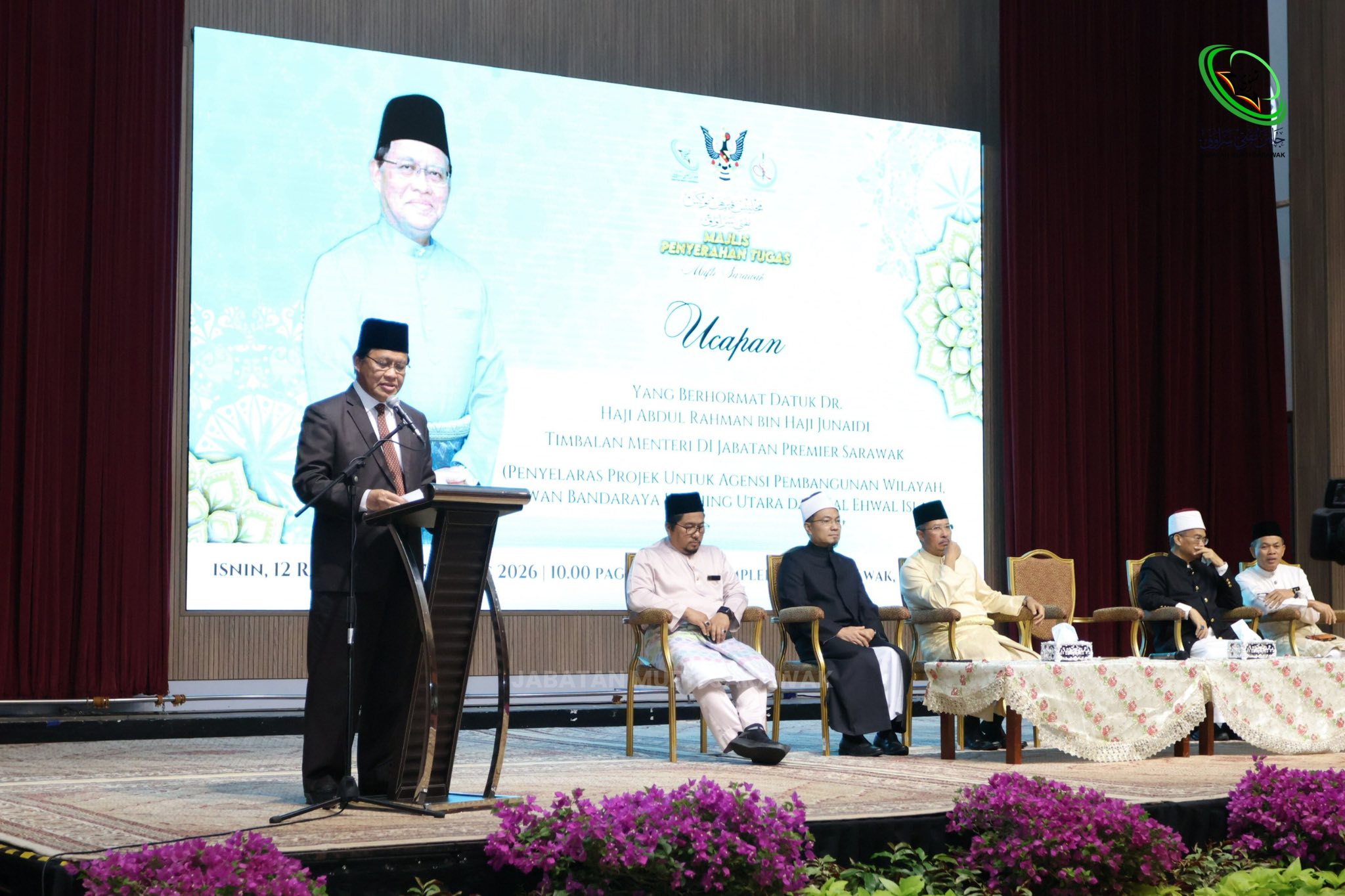 Kuching, 2 Mac 2026 — Majlis Penyerahan Tugas Mufti Sarawak telah berlangsung dengan penuh tertib pada Isnin, 12 Ramadan 1447H bersamaan 2 Mac 2026M, bertempat di Dewan Kompleks Islam, Kuching.